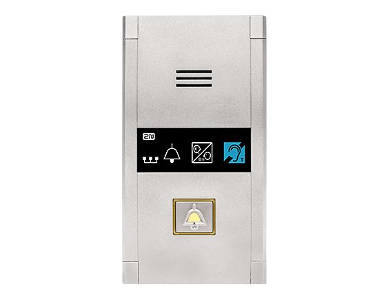 Robust metal-protected audio unit with a prescribed size ALARM button, including blind indicators and backlit pictograms (tempered glass). Order based, non-cancellable. Support only over 2N
