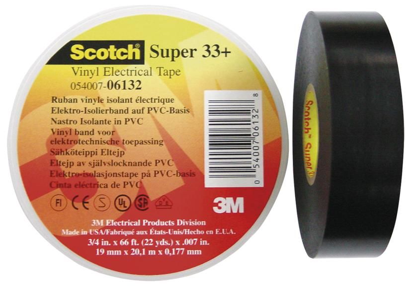 3M Scotch Super 33+ 25mmx33mx0.18mm sw vinyl electrical insulation tape 80014001020