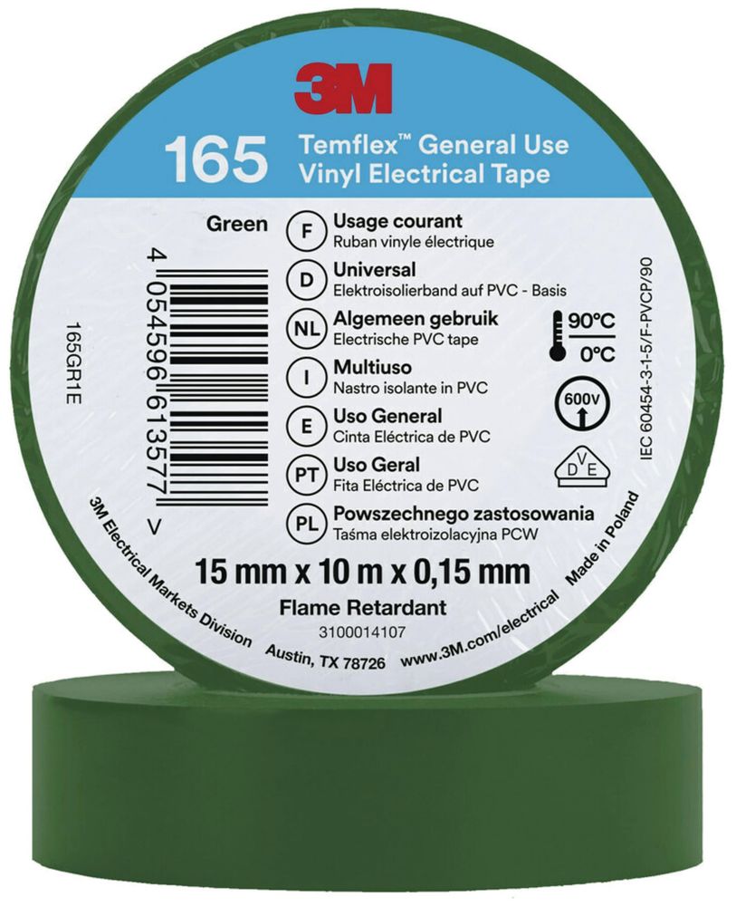 3M 165GR1E Temflex 15mmx10m Green Vinyl Insulation Tape 0.15mm 7100184726