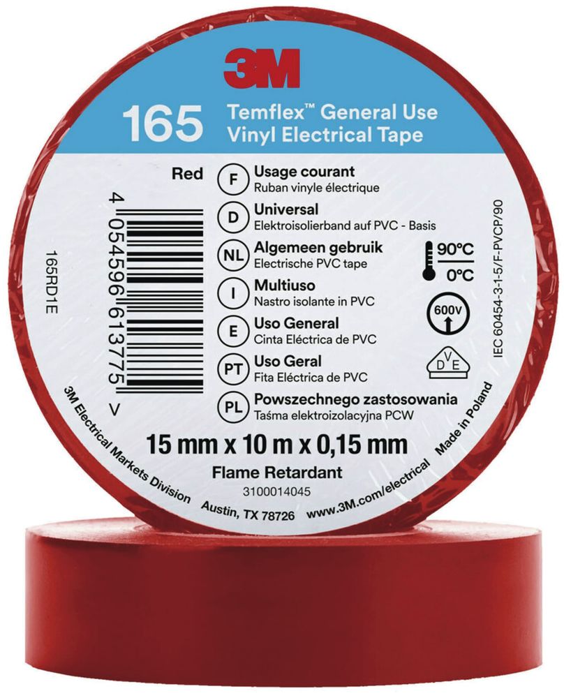 3M 165RD1E Temflex 15mmx10m Red Vinyl Insulation Tape 0.15mm 7100184730
