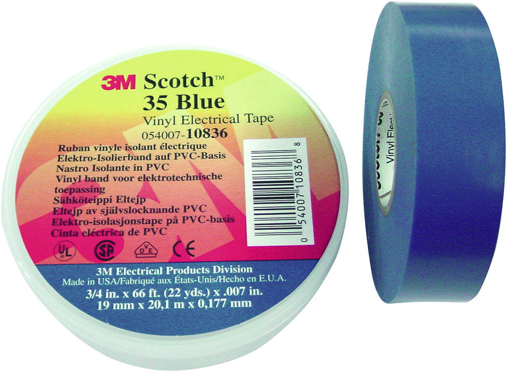 3M 35 19mmx20mx0.18mm blue vinyl electrical insulation tape 7000031670