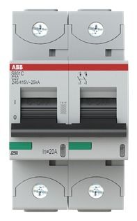 ABB S802C-C20 high voltage circuit breaker, 20A, C,415VAC=Icu 25kA, 2P