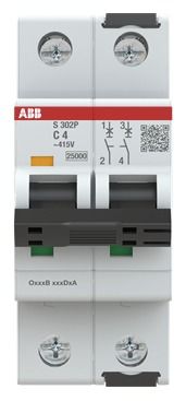 ABB S302P-C4 circuit breaker C-Char.25kA 4A 2P 2CDS382001R0044