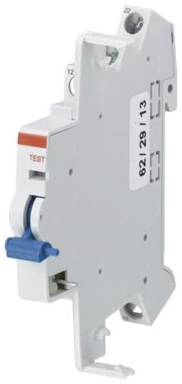 Function: Display of the switching position of the residual current circuit breaker (RCCBs) or display in the event of a fault that the residual current circuit breaker has tripped due to a fault current against earth (switchable). Suitable for RCCB series F200 125A, F200 B 80-125 A and F200 B+ (blue switch knob on the left).