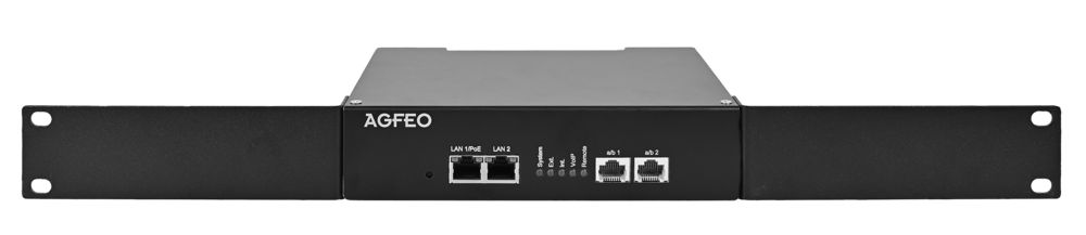 Full-IP System im 19'-Gehäuse (schwarz), 1 HE, 2x LAN-Schnittstelle (optionale Netzwerktrennung nach Aktivierung der 2. LAN Schnittstelle via zusätzlicher ETH Plus Lizenz möglich), 2 analoge Anschlüsse (Betriebsart Telefon, TFE oder Fax). System-Statusanzeige via integrierter LED. Bis zu 60 VoIP-Kanäle (6 im Grundausbau, weitere via kostenpfl. Lizenz), mögl. Nutzung: SIP extern (SIP Provider), SIP intern (SIP Geräte, AGFEO DECT IP), ASIP (AGFEO ST für IP Schnittstelle). Bis zu 80 Benutzer (10 im Grundausbau, weitere via kostenpfl. Lizenz) mit bis zu 120 Geräten ohne Typeinschränkung. Voicebox-System inkl. Voice to Mail (4 Voiceboxen im Grundausbau, erweiterbar auf max. 80 via Lizenz), Faxbox-System inkl. Fax To Mail via opt. Lizenz (max. 3 Faxboxen), Audio-Informations-System (1 Kanal im Grundausbau, per Lizenz erweiterbar auf max. 13 Kanäle), optionales Anruf-Management-System (AMS) per Lizenz, TAPI-Serverfunktionalität (3 TAPI-Lines im Grundausbau, via Lizenz auf max. 83 und CSTA Erweiterung). Vollumfängliche Unterstützung von AGFEO DECT IP-Systemen. Türbildanzeige auf Systels, DECT IP-Geräten und im CTI/UC Client. SmartHome Server on Board inklusive Unterstützung der SmartConnectBox (ext. Relais u. Sensoren). Konfiguration via LAN. Integr. Updateserver mit hinterlegten FW-Ständen für angeschl. Systemtelefone. Betrieb von AGFEO ST 22 IP, ST 42 IP, ST 45 IP, ST 53 IP, ST 54 IP und ST 56 IP möglich. AGFEO Dashboard Server (on Board) für CTI/UC Funktionalität via optionaler Lizenz dauerhaft aktivierbar (systemübergreifend, Demobetrieb möglich). CTI/UC Steuer- und Bedien-Software AGFEO Dashboard inkl. mögl. VISOfon Funktionalität (opt. Lizenzerweiterung). Verkaufseinheit: 1 ST.