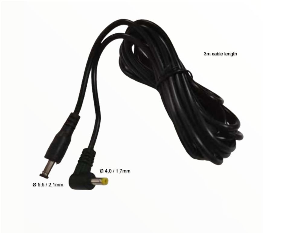 The article ALLNET replacement power supply e.g. Extension DC 5.5mm x 2.1mm plug-->DC plug 4.0mm x 1.7mm, 3m length is currently in stock