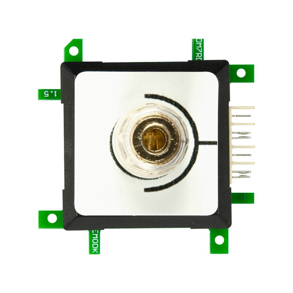 4mm socket for banana plugs with additional option to directly clamp a cable lug or a cable up to 6qmm. Red color marking. The connection from the brick circuit ends at the socket (endpoint). The socket is connected to the two inner contacts of the Herma plug. Maximum current 12A.