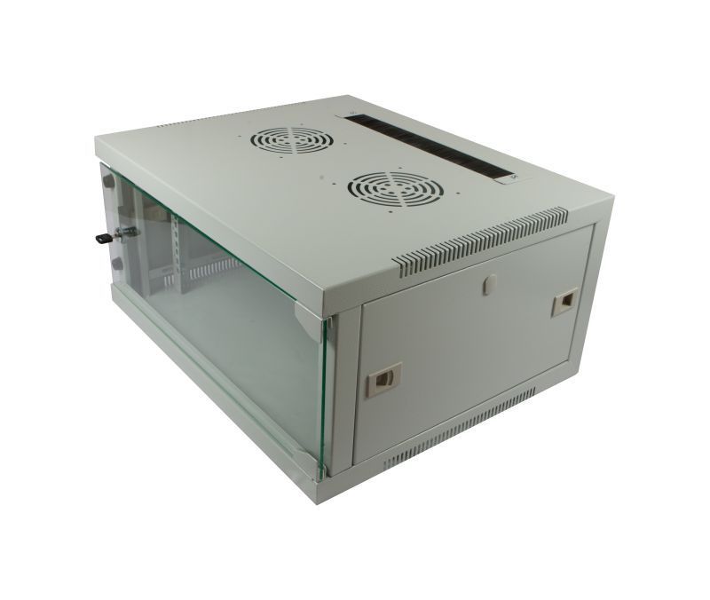 ALLNET 48,3 cm ( 19 inch )wall-mounted enclosure, 6U, 1-piece, T445 / B541mm, Lichtgra