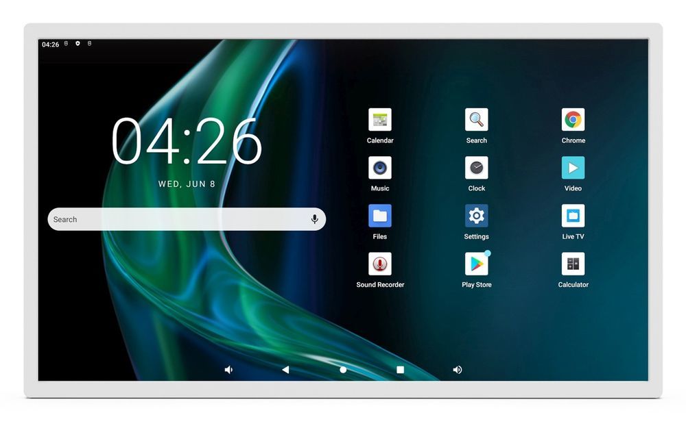 stand optional and not included!!!High-performance RK3588 chipset Octa Core (4xA73+4xA55) 4GB RAM Wifi 6 Gigabit WiFi NFC (optional ext. USB NFC module for fixation on the side) Android 12 System CPU RK3588 Quad core cortex A55+Quad core cortex A76 RAM 4GB Internal memory 32GB Operation system Android 12 Display Panel Size 81,3 cm ( 32 inch ) LCD Panel Type IPS Resolution 1920*1080, 3840x2160 Display Colors 16.7M Colors Color Gamut sRGB 99% Display mode Normally black Viewing angle 85/85/85/85(L/R/U/D) Contrast ratio 1000:1 Luminance 250cdm2 Aspect Ratio 16:9 Response Time 14ms Back- light Type Eled Touch Model Type Incell Touch Number of points 10-Point Interface for touch HID-USB Network WiFi 802.11b/g/n/a/ac/ax (WiFi 6) Ethernet 100M/1000M Bluetooth Bluetooth 5.0 Interface Power Jack DC power input MIC IN External microphone input Earphone Output 3.5mm earphone output Type-c Full Function ( Except for charging function ) SIM Slot Optional 4G/5G Module USB Standard USB 2.0 Host USB USB 3.0 USB USB 3.0 HDMI IN Support HDMI 2.0 RJ45 Ethernet interface Other Product Colors white/Black VESA 100mm*100mm Button Power/Vol+/Vol- Other