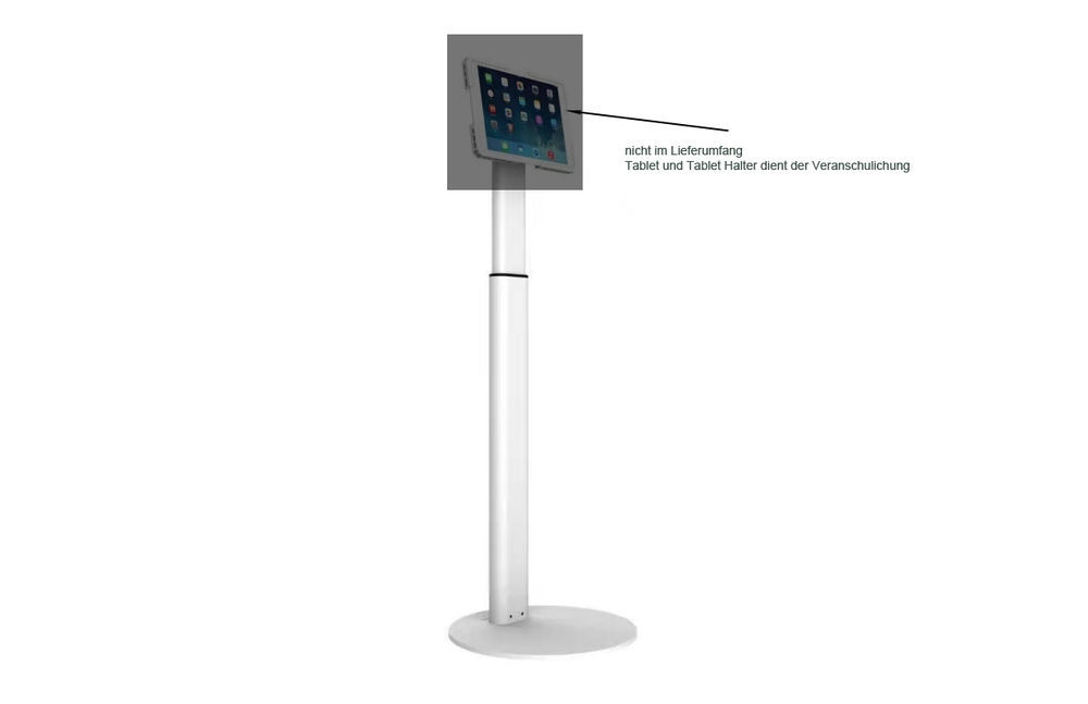 VESA stand holder height adjustable for tablet, display, monitor 7.5cm/10cm, white. Floor mounting