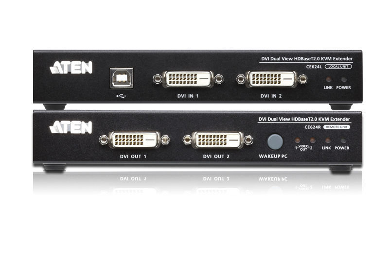 1x CE624L USB DVI dual display HDBaseT 2.0 KVM extender (local device) 1x CE624R USB DVI dual display HDBaseT 2.0 KVM extender (remote device) 2x LIN5-26W1-W11G DVI-D cable ( 1.8 m) 1x LIN5-0205-21DG Pink audio jack cable set (1.8 m) 1x LIN5-0205-21CG Green audio jack cable set (1.8 m) 1x LIN6-04U1-V1BG USB cable (1.8 m) 2x 0AD6-8005-40MG power supplies 2x LIN2-418K-E12G DC cable 8x footrests 2x mounting sets 1x user manual