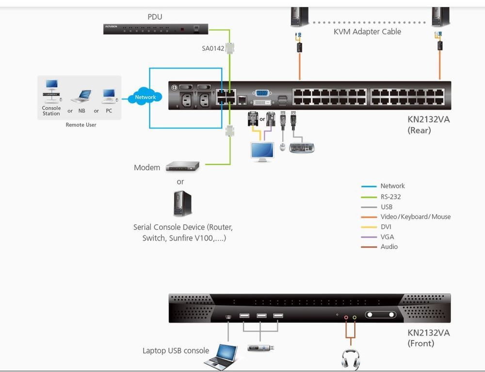 Aten KVM switch 32-fold, DVI/USB, 2xLAN (IP-capable)