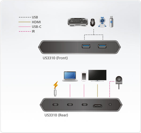 Aten USB-C KVM Dock Switch mit Power Pass-Through , 2-fach, 4K HDMI