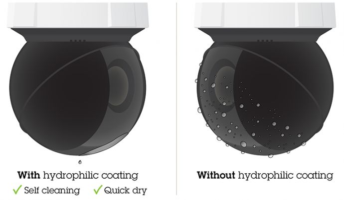 Accessories transparent dome with special hydrophilic coating. Helps prevent water droplets from covering the dome when it rains. The coating also provides a self-cleaning effect that helps remove dirt and dust caused by rainwater. Compatible with select AXIS Q61 series cameras that support IR illumination, e.g.: AXIS Q6125-LE. Individual packaging.