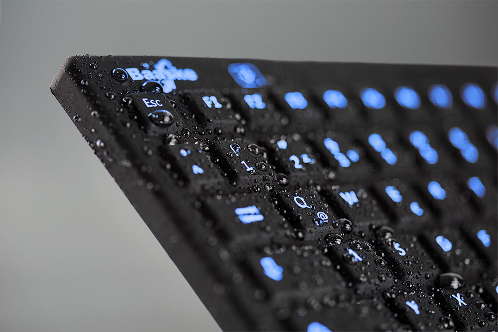 Fully sealed, the silicone keyboard can be submerged in liquids (IP68). The Tru-Lock mechanism also allows for cleaning during operation. The pleasantly quiet key operation provides users with comfortable handling and excellent tactile feedback.