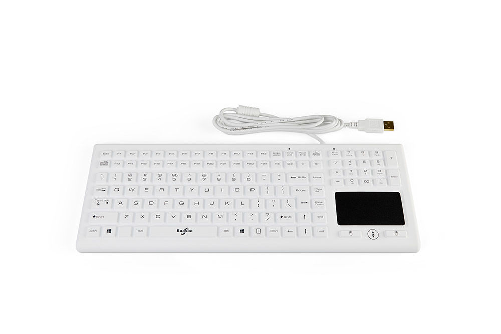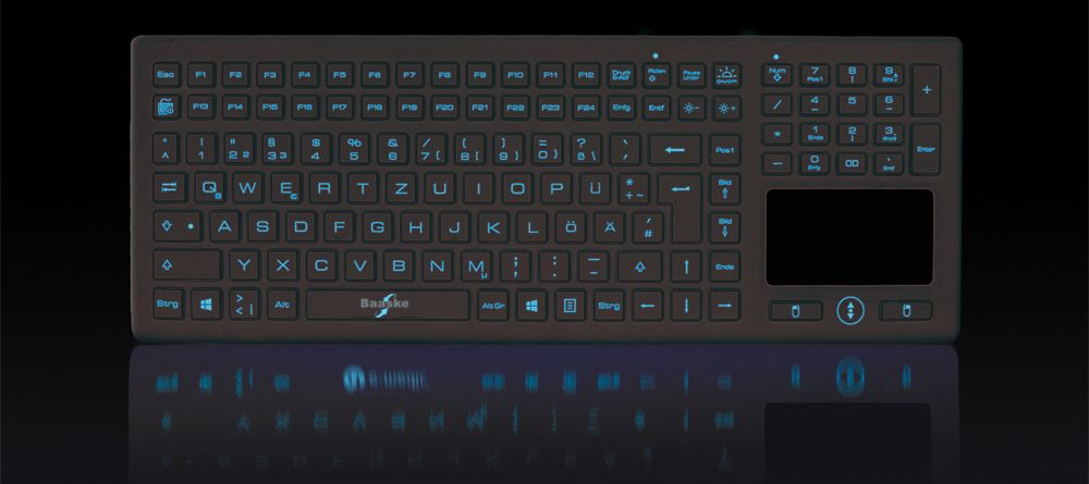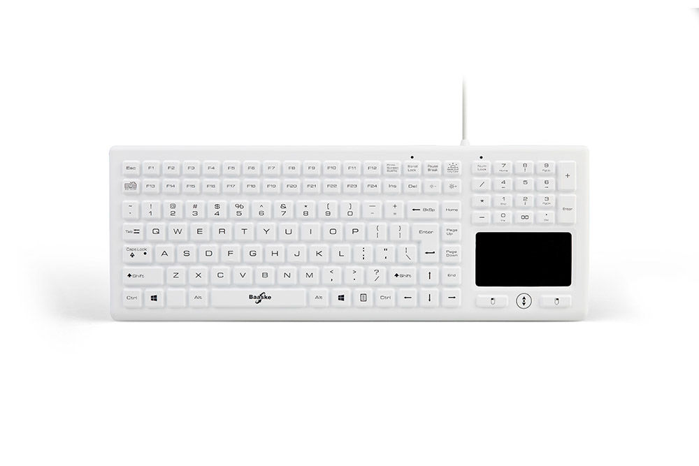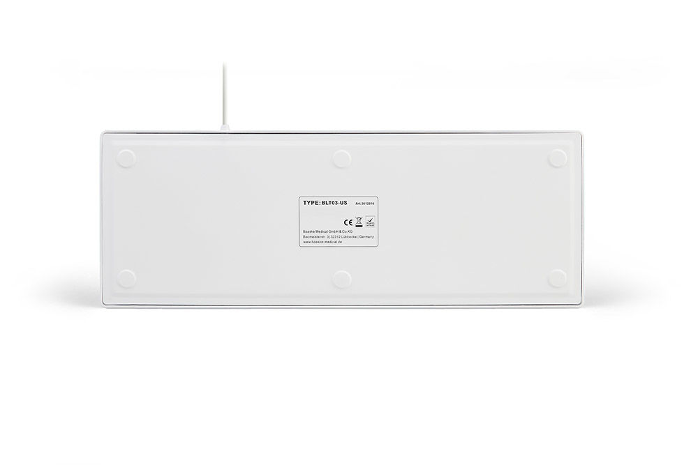 The Baaske BLT03 silicone-coated keyboard features a blue backlight that can be adjusted in steps. Perfect for low-light areas such as radiology departments.