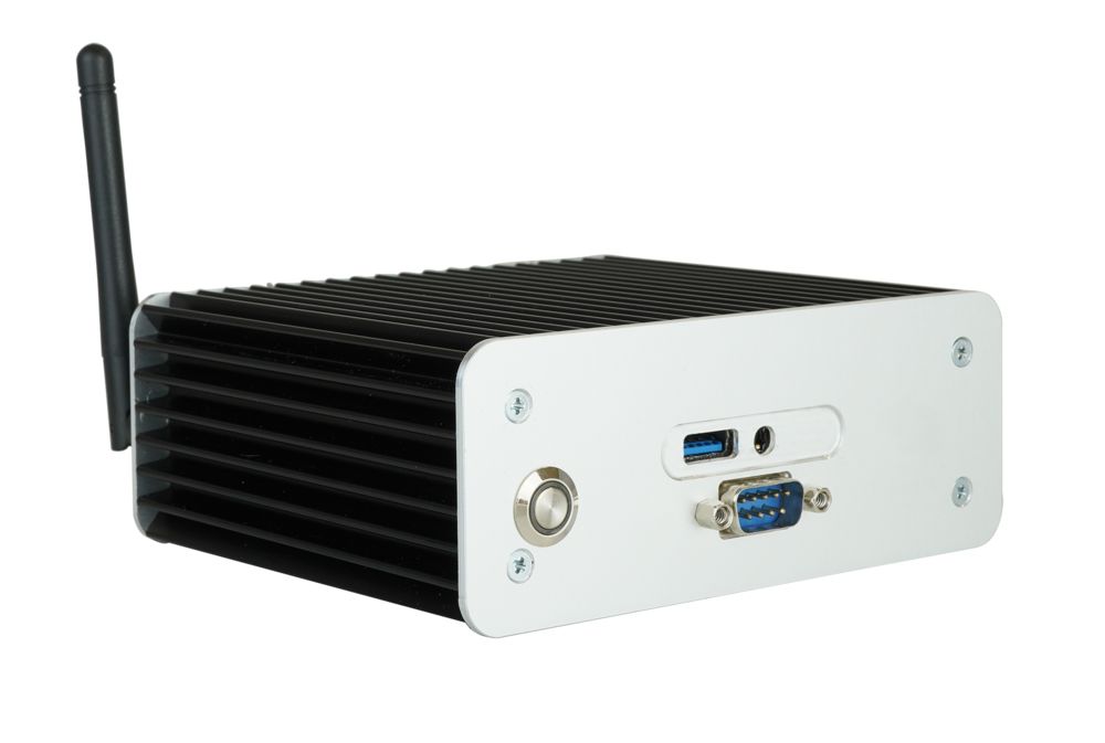 The solid aluminum profile housing reliably protects against mechanical stress. Tight tolerances and special seals make the case fully dustproof according to IP60. The entire electronics inside the mini-PC are mounted on a single board. There are no cables or unsecured connections that could loosen due to vibration. A heat pipe cooling system is directly attached to the black anodized full-aluminum heat sink profile case. Mounting options include DIN rail, wall mount, 19-inch rack mount, and optionally VESA mount.