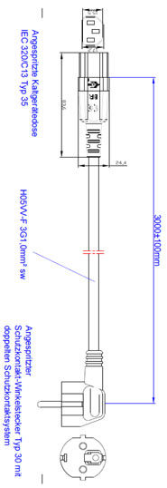 Bachmann supply cable H05VV-F 3G1.0mm² sw, 3.0m, type 30/35 C13