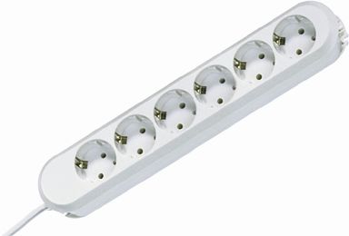 Tischsteckdose SMART 6x white without switch, openable, screwed with child protection 3M H05VV-F 3G1,5mm² Schuko, in a polybag with header