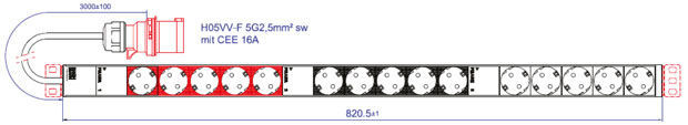 Bachmann PDU, sockets, 15x sockets (CEE7/3) -> 3ph supply line 3m, with plug CEE 16A red
