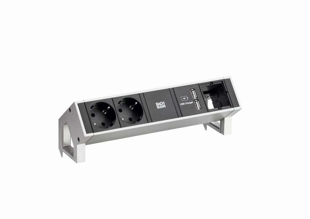 The article Bachmann Desk2 power strip, 2xsockets (CEE7), 1xUSB double charger, 1xABD, with supply cable 0.2m GST18, painted stainless steel is currently not in stock und muss auftragsbezogen bestellt werden.