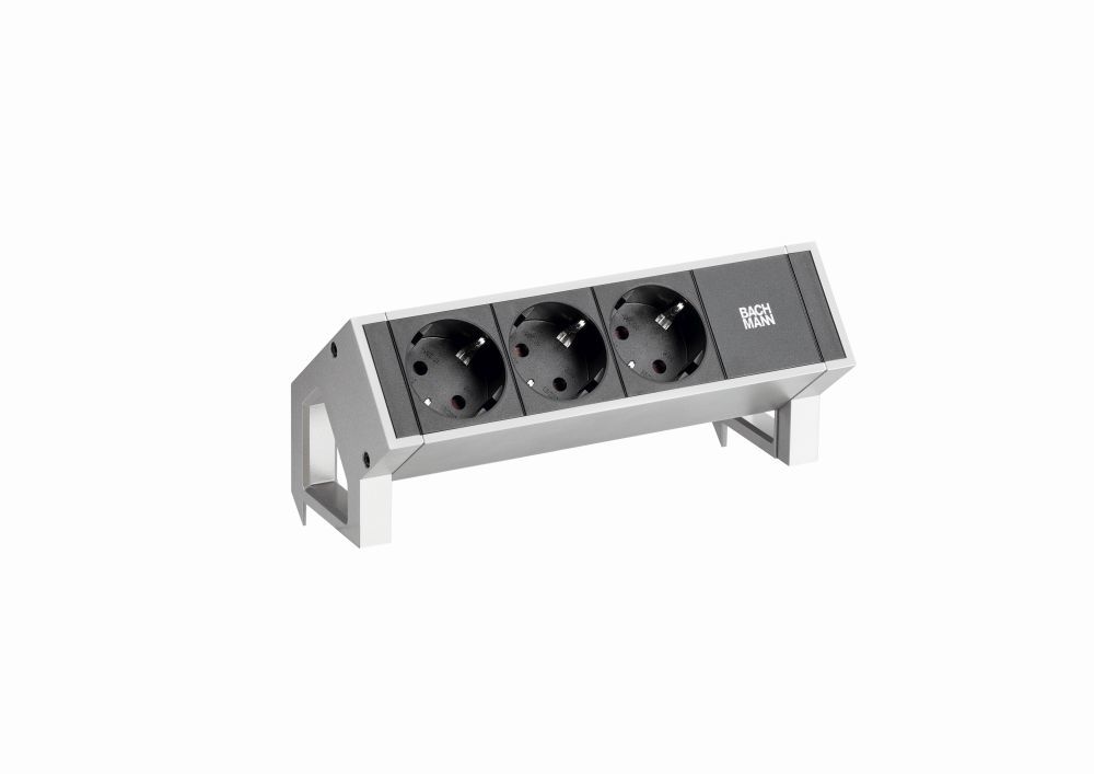 Bachmann Desk2 power strip, 3x sockets (CEE7), 1xABD, with supply cable, with 375,000 stainless steel