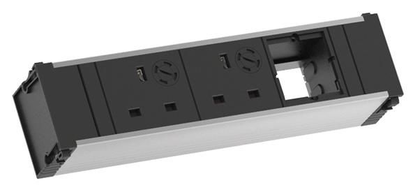 Coni socket unit aluminum L 3-fold 217mm, 2xUK 90° 5A socket