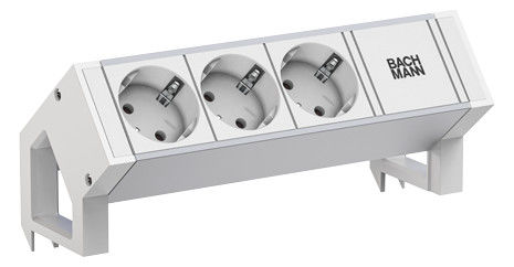 Bachmann Desk2 Steckdosenleiste, 3xDosen(CEE7) mit Zuleitung GST18, RAL9010 weiss,