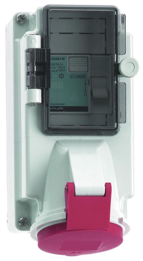 Other technical features: The cable entry is open once at the top and closed twice at the bottom, The housing base can be rotated by 180°, With built-in residual current circuit breaker 40/0.03A 4-pole