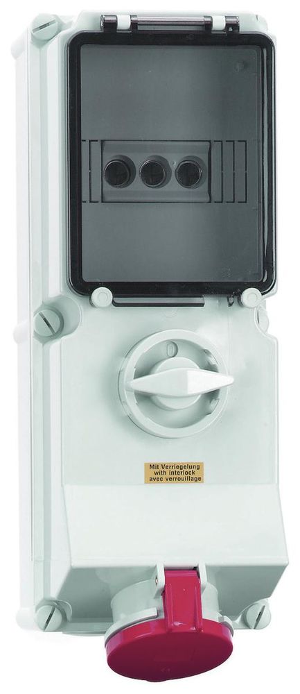 Other technical features: The cable entry is open twice at the top and twice at the bottom, Lockable in 0 position for up to 3 padlocks with a shackle diameter of up to 7 mm, A fuse base D 02 3-pin is available under the operating flap
