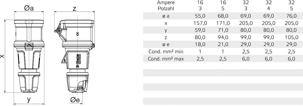 16A 5p (3P+N+PE) 400V (200/346 - 240/415V~) 6h IP54