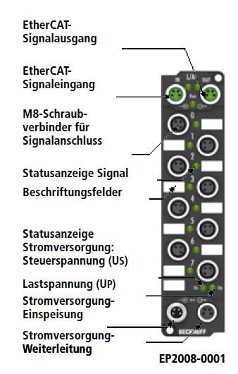 Beckhoff EP2008-0001 EtherCAT Box 8DA 24VDC IMAX=0.5A M8 I/O
