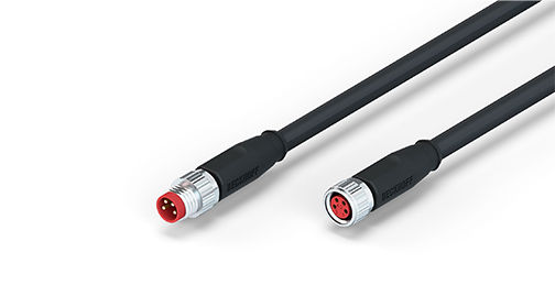 M8, plug, straight, pin, 4-pin, A-coded - M8, coupling, straight, socket, 4-pin, A-coded