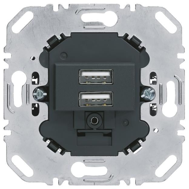 USB charging socket 230V 2-gang 3.0A square support ring anthracite