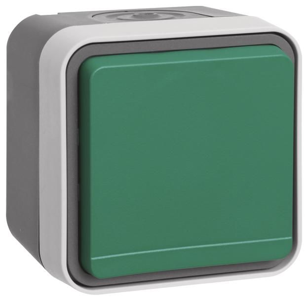 SCHUKO socket outlet with green hinged cover AP W.1 gr/lgr matt