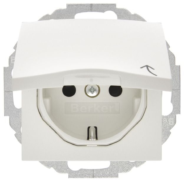 Berker 47441909 UP outlet polar white 4744 19 09 S.1/B.1/B.7 with hinged lid