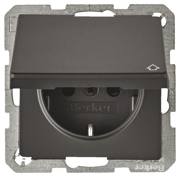 Berker 47516086 SCHUKO, m. Hinged lid Q.1/Q.3 anthracite, including