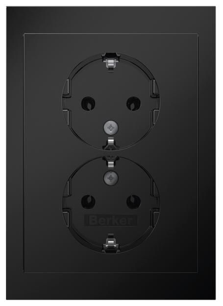 Berker 47742245 SCHUKO double socket with cover plate Berker R.3 black