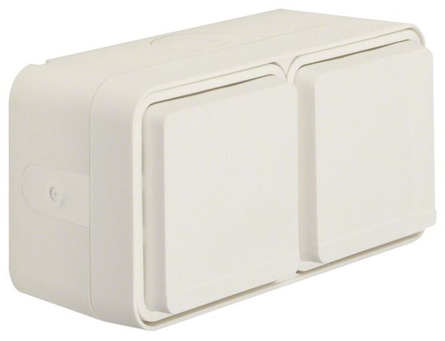 Berker 47753522 Double SCHUKO, m.Klappdeckel AP W.1 polarwhite
