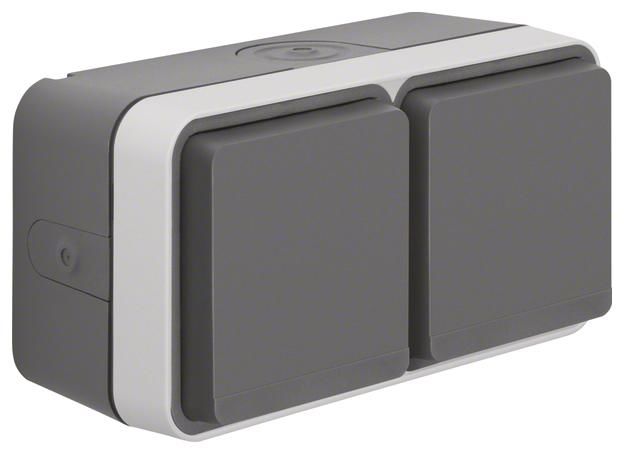 SCHUKO double socket with hinged lid AP W.1 light gray