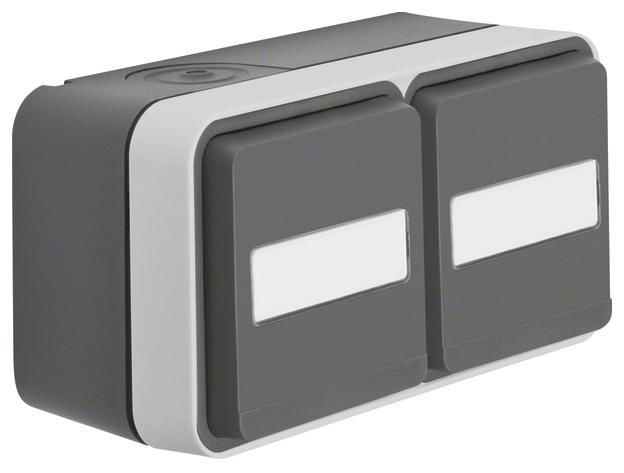 Berker 47753535 Double SCHUKO, m.Klappd.u.Beschrift field AP W.1 lichtgr