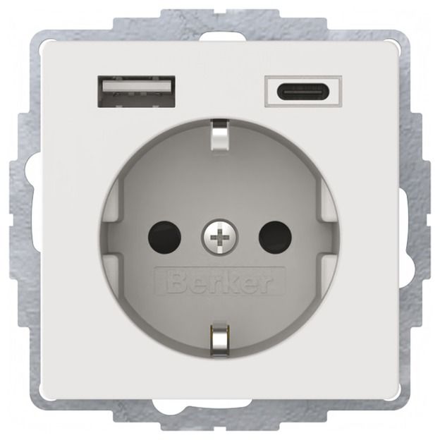 Berker 48046089 SCHUKO/USB AC Q.1/Q.3 socket outlet polar white velvet