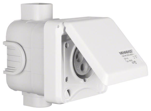 Berker 568401 CEE socket 3-pole 16 A with polar white up, hinged lid connection systems