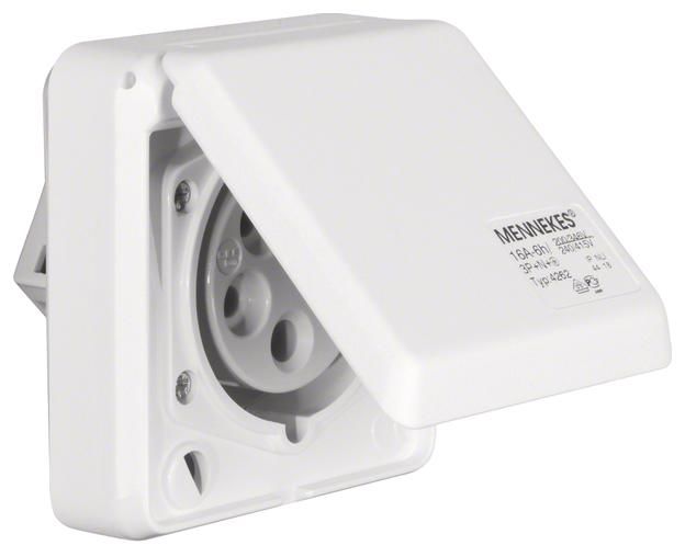 Berker 578501 CEE socket 5-pole 16 A with Eb polar white, hinged lid connection systems