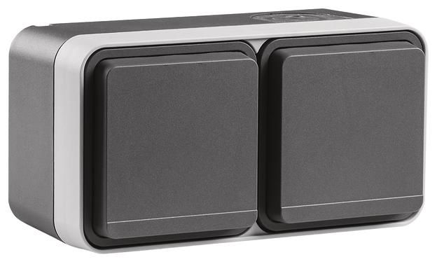 SCHUKO double socket and hinged lid AP W.1 lgr matt