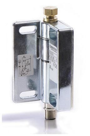 . Safe, complete solution for rotating protective devices with hinges, includes hinge and safety switch