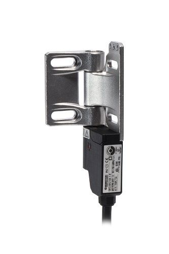 . Stainless steel hinge with integrated safety switch in plastic housing