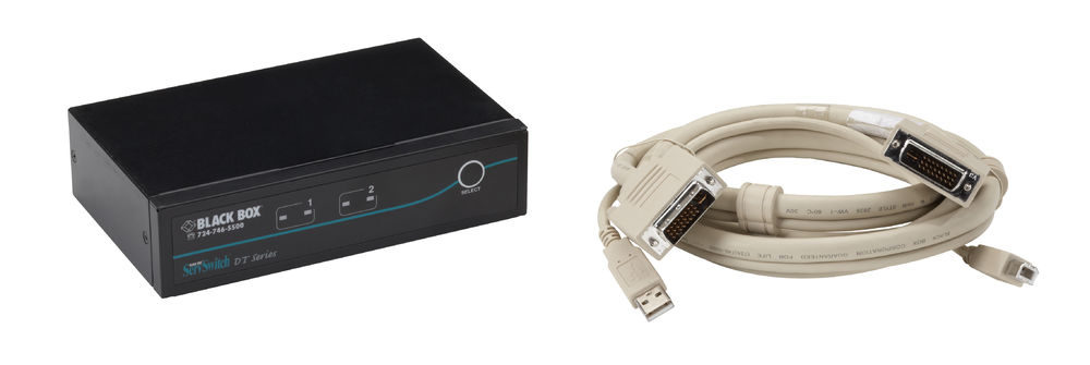 We offer you BlackBox KV9612A-K ServSwitch DT DVI with emulated USB 2.0, 2-port comfortable hotkey switching integrated USB hub kit including two CPU cables (EHN900024U-0006) always at the best possible price. We can give you a discount of 2% on BlackBox KV9612A-K ServSwitch DT DVI with emulated USB 2.0, 2-port comfortable hotkey switching integrated USB hub kit including two CPU cables (EHN900024U-0006) if you choose payment in advance on ordering.