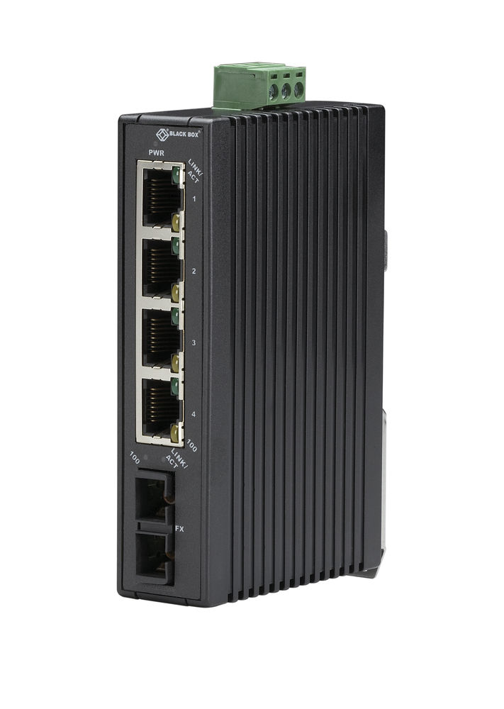 BlackBox LBH120A-H-SC Hardened Mini 4 Port Industrial Switch 10/100BASE TX + 1 port 100 Base FX, DIN rail mounting