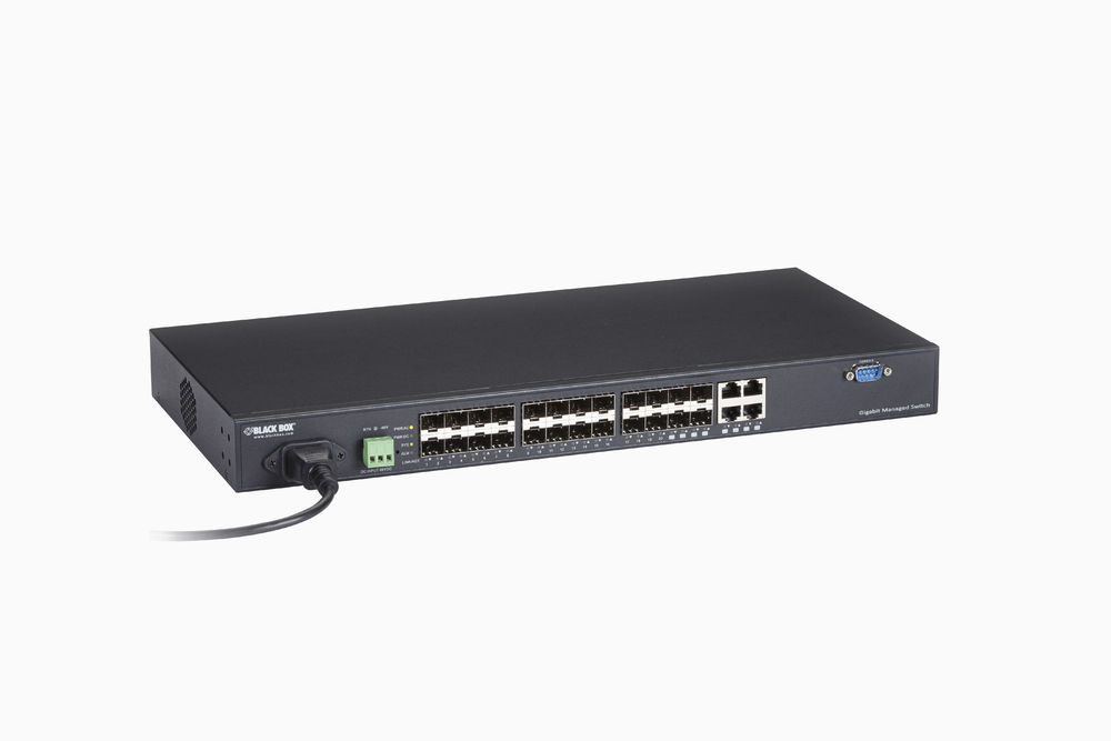 Managed Gigabit switch with 24 SFP ports for maximum network flexibility and scalability.